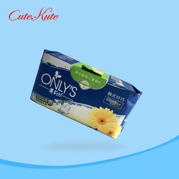 | Material Details | Sumitomo Japan SAP; USA Fluff Pulp; Super-absorbent Core; Dry Weave Perforated Film / Organic Cotton Cover; Quick-Easy Wrapping with Sticker; Natural Aloe Perfume. |